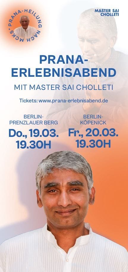 - Erlebe bei einem der deutschlandweiten Erlebnisabende die Prana-Heilung hautnah, sieh Prana-Anwendungen live und lerne die Prana-Meditation über die 2-Herzen für mehr Frieden.